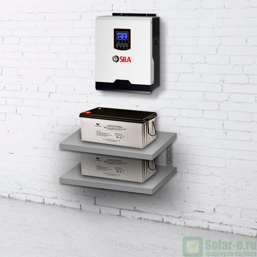 ИБП для дома и офиса SILA V-1000P ( 2,4 кВт*ч ) состоит из инвертора/зарядного устройства SILA V 1000P мощностью 1 кВт ( кратковременно 2 кВт ) и внешнего аккумулятора 200Ач.
